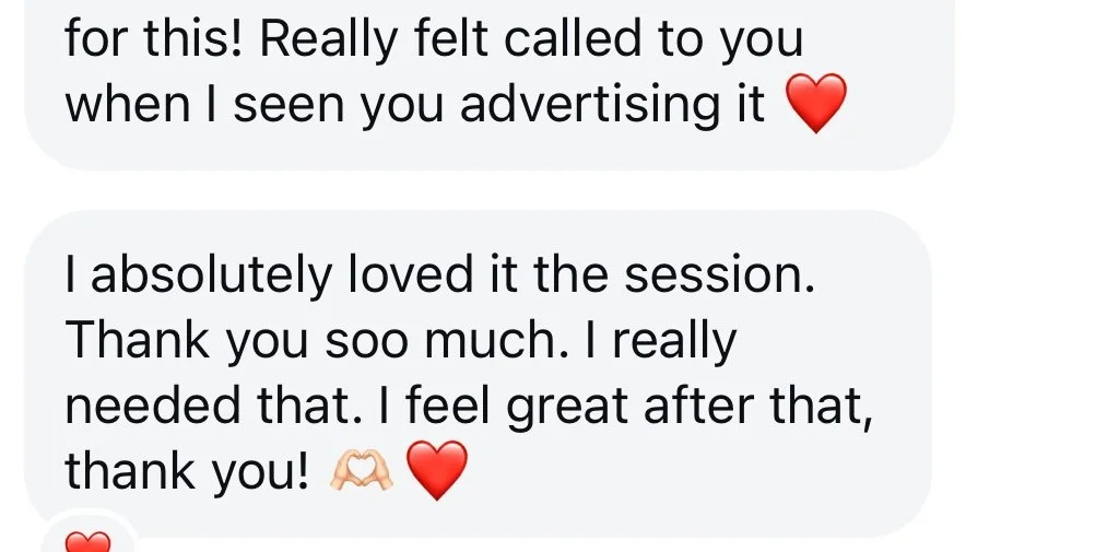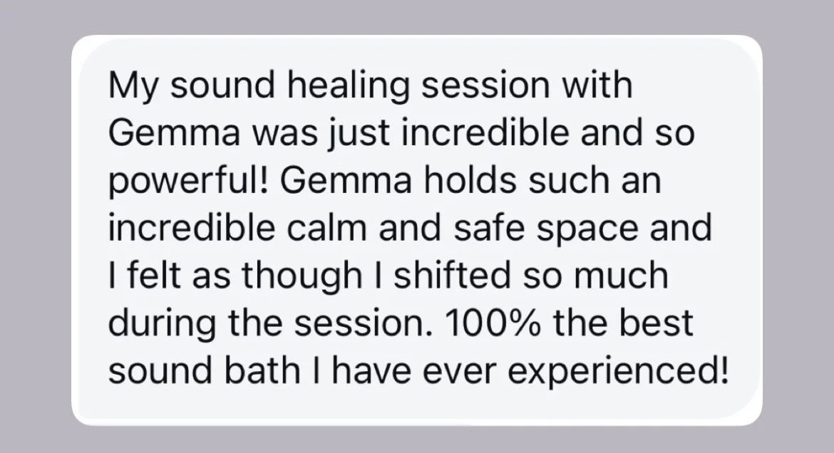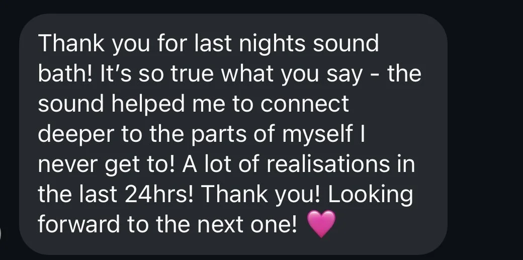 "I was meant to find you! Your throat chakra sound bath made me really emotional & cry which related to alot of blocked up things. Thank you - you are helping me to heal!"